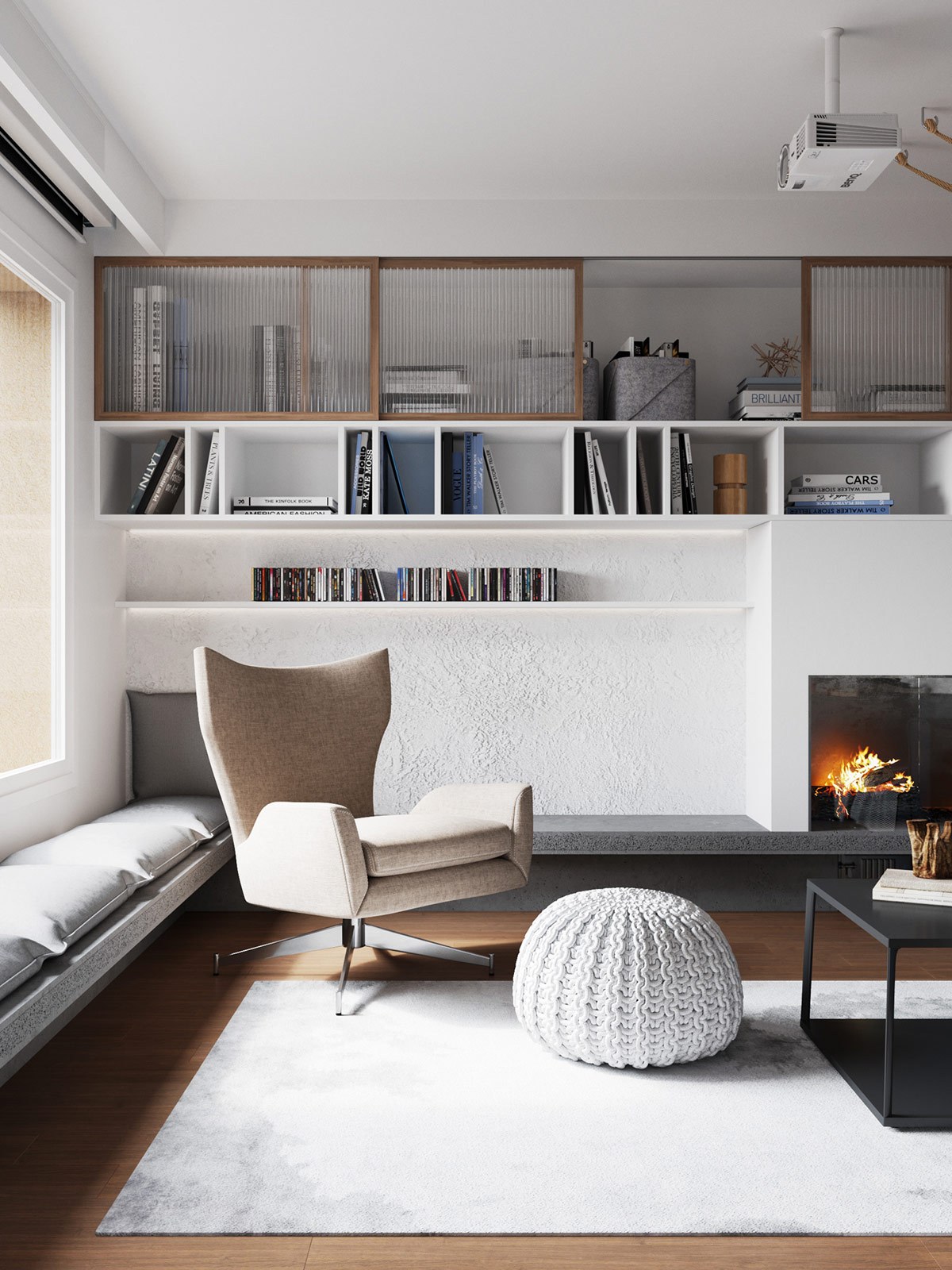 Sự xuất hiện của màu trắng sáng và chiếc ghế tựa đơn tạo nên điểm nhấn mạnh mẽ