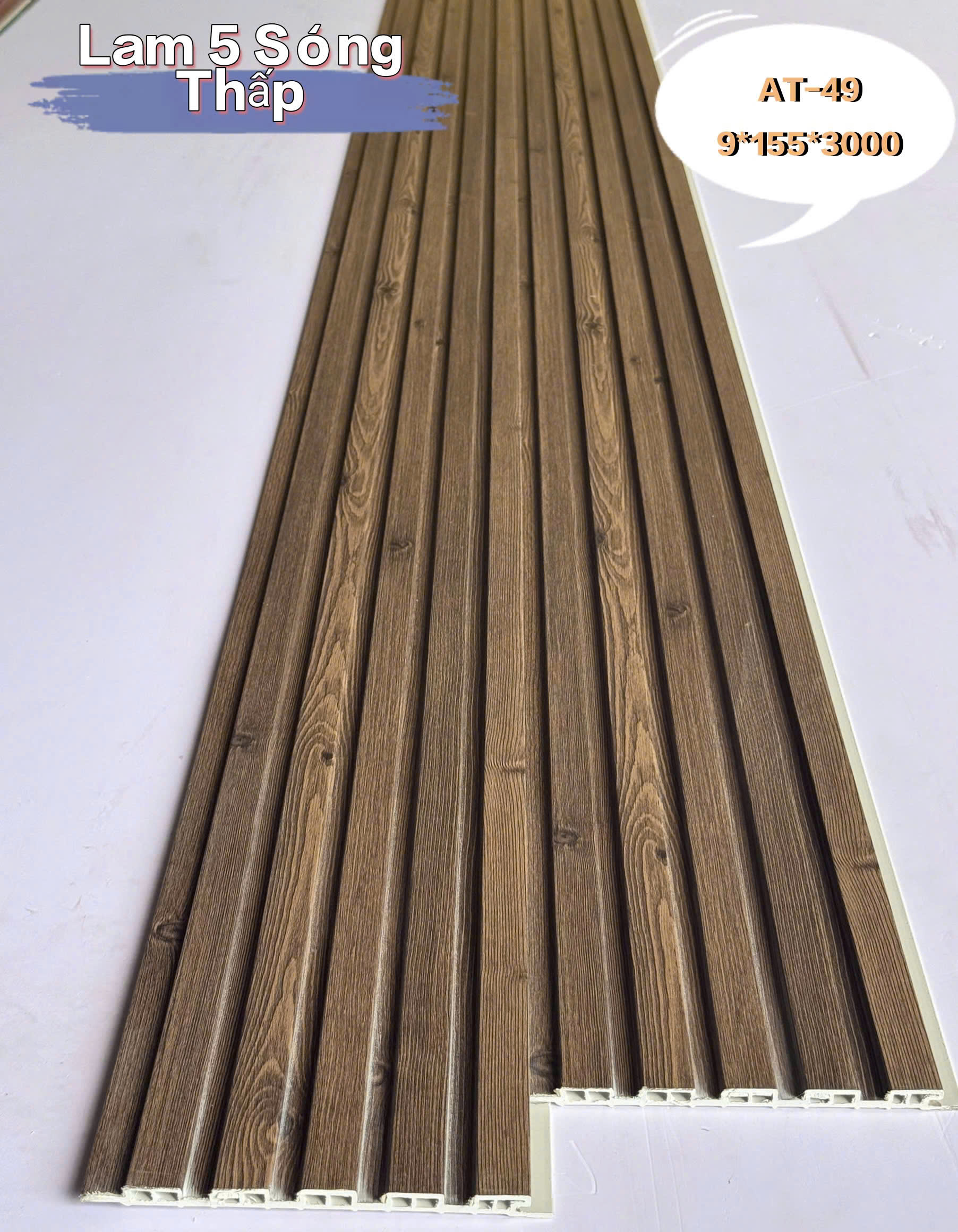 Thanh lam 5 sóng nhựa PVC được thiết kế với 5 rãnh sóng tinh tế, mang đến vẻ đẹp sang trọng và hiện đại cho mọi không gian. Sản phẩm được làm từ nhựa PVC cao cấp, đảm bảo chất lượng vượt trội, phù hợp với cả nội thất và ngoại thất.