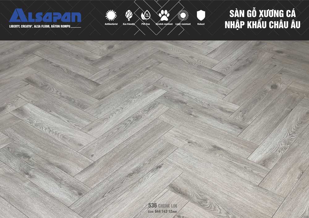 Khi nói đến nghệ thuật sàn gỗ, mẫu Alsapan 536 là một minh chứng rõ rệt cho sự hòa quyện hoàn hảo giữa tính thẩm mỹ hiện đại và nét cổ điển vượt thời gian. Được thiết kế theo dạng xương cá – một kiểu lát kinh điển có nguồn gốc từ kiến trúc châu Âu, sàn gỗ 536 mang đến một bức tranh nghệ thuật tinh tế ngay dưới chân bạn.